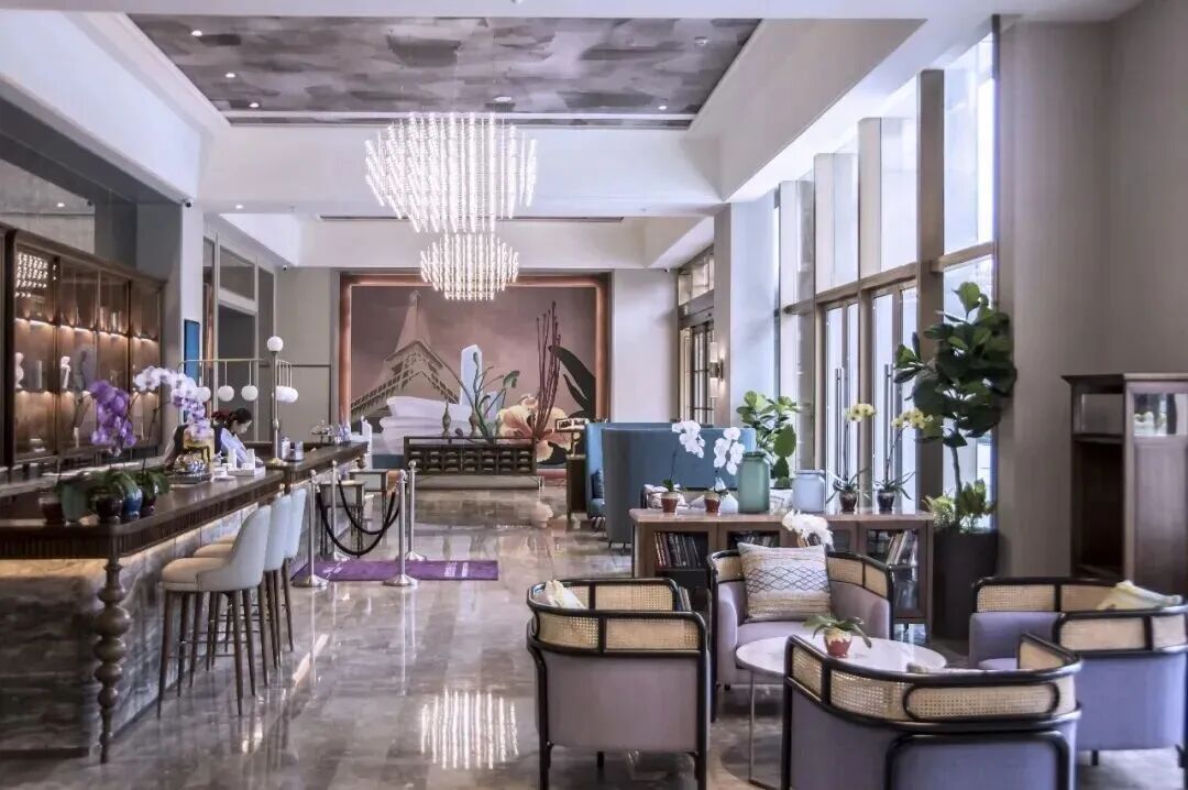该酒店拥有365间豪华客房和无敌景观私家阳台,酒店室内外恒温泳池相互贯通,拥有1万平方米私家园林,全年可观日出赏晚霞。